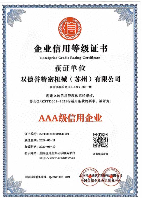 企業(yè)信用等級證書-雙德譽精密機械(蘇州)有限公司