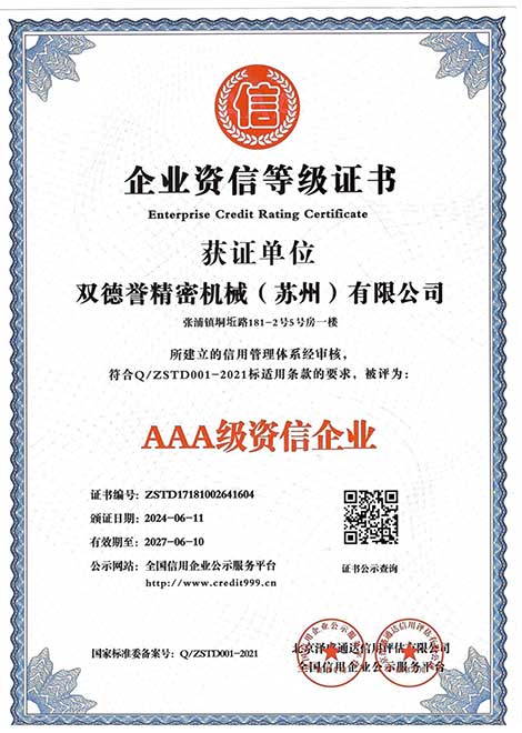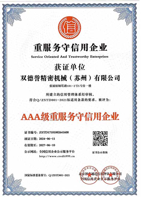 重服務(wù)守信用企業(yè)-雙德譽精密機械(蘇州)有限公司