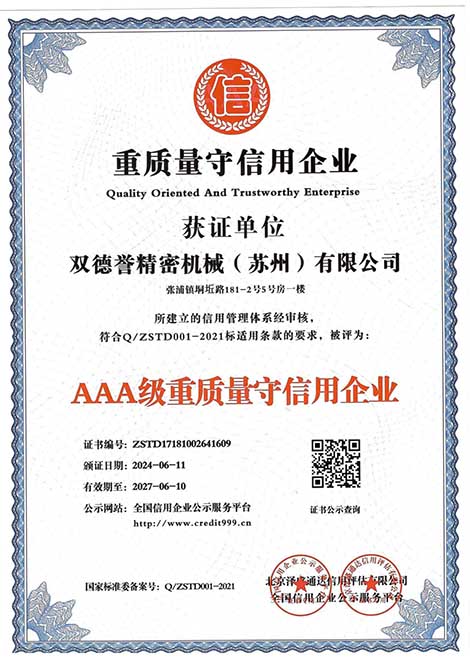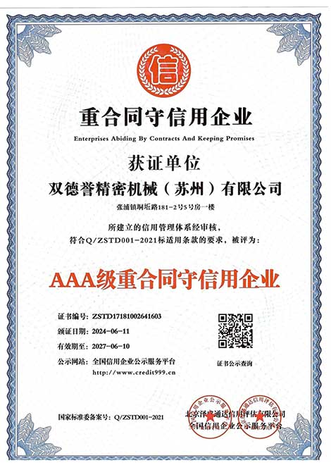重質(zhì)量守信用企業(yè)-雙德譽精密機械(蘇州)有限公司