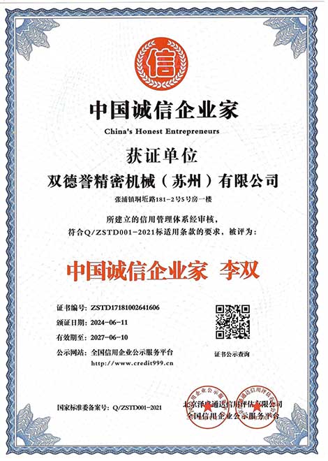 中國誠信企業(yè)家-雙德譽精密機械(蘇州)有限公司